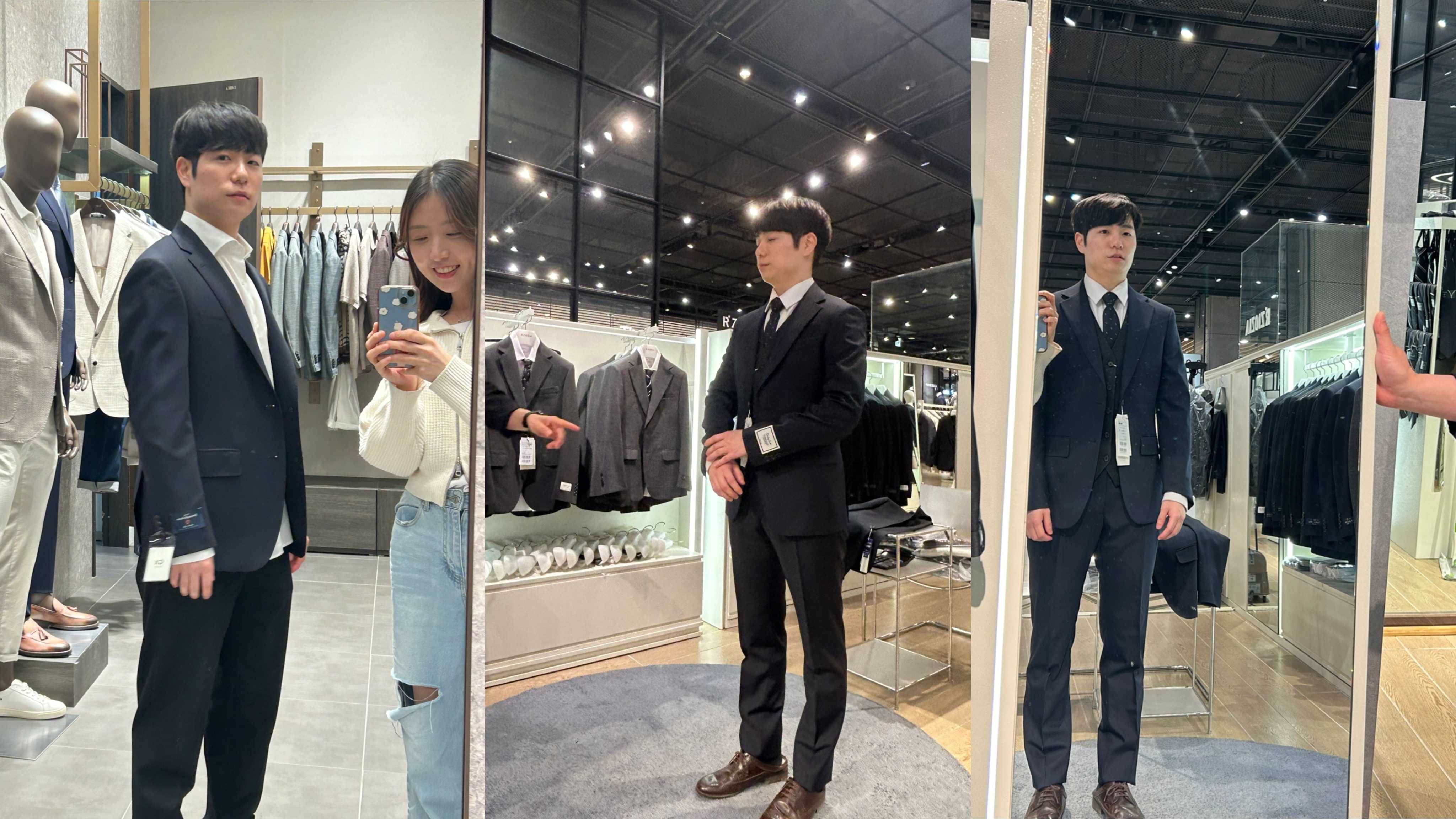 5월, 촬영 예복을 맞추러 갔다. 내 옷 아닌 신랑 옷이지만 같이 쇼핑하는 거 잼났음. 베스트까지 쓰리피스로 슬림하게 입혀놓으니 예쁜걸~