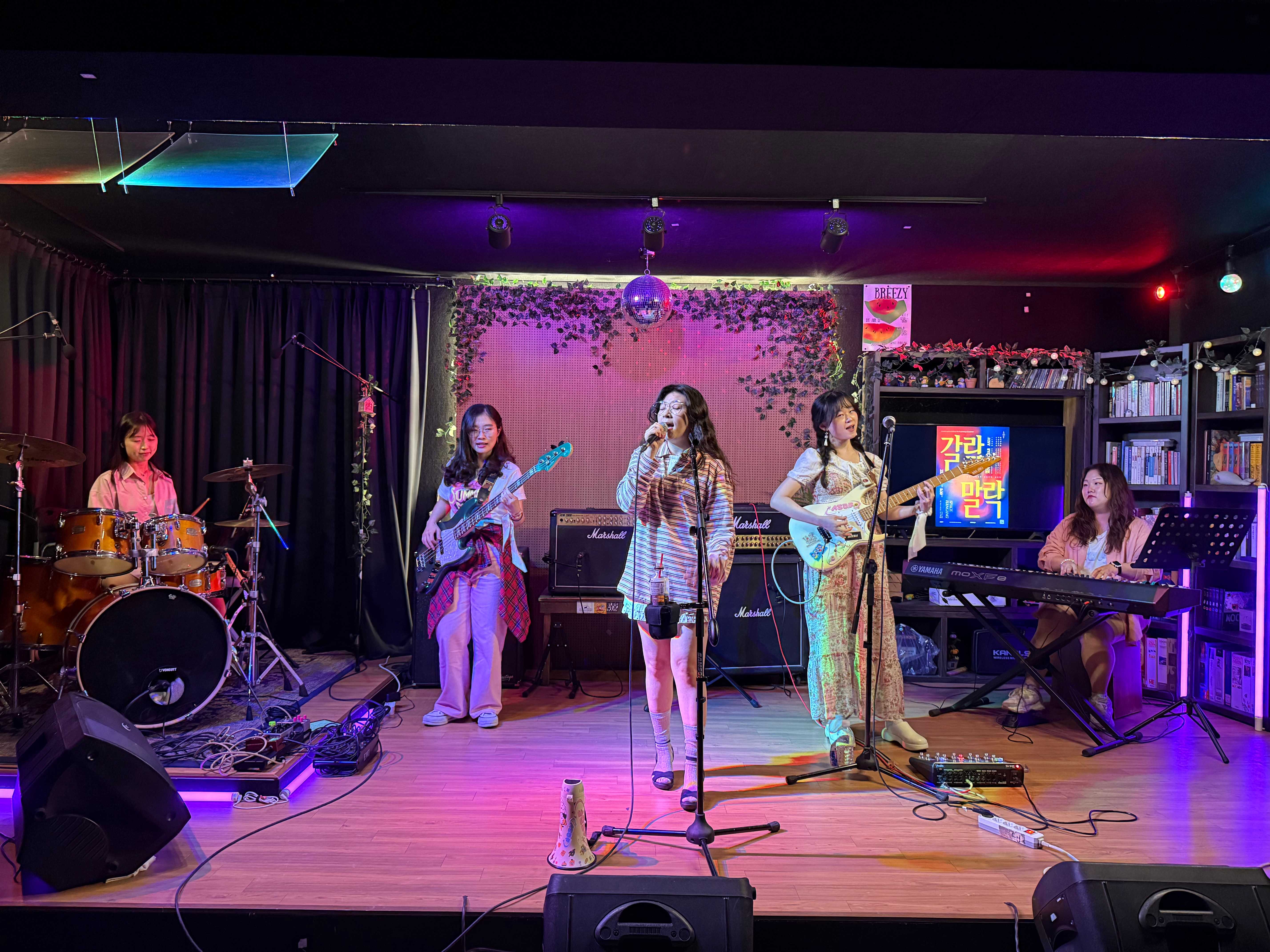 홍대까지 멀어서 빡셌지만 공연장 넘 이뻤다! 처음 함께하는 직밴 분들과 인연도 맺고 (사실 다들 좀 양아치 같았음) 울 멤버들의 공연 욕구를 채워주어서 기쁘다 .